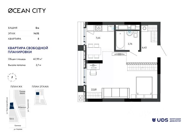 Продаётся 1-комнатная квартира квартира в 10 минутах от центра Ижевска, ул Холмогорова, площадью 46.00 кв. м. Квартира находится в жилом комплексе бизнес-класса "МИРЫ" от федерального застройщика "Железно". Флагманский проект "МИРЫ" - место, где абсолютная безопасность, гармония тишины и привилегия жизни в шаге от делового центра объединяются в единый ансамбль. Здесь соединяются эстетика природы и энергия городской жизни - вы сами выбираете свой ритм каждый день. Каждая из трех башен обладает собственным характером, выраженным через благородную палитру металлов - золото, серебро, бронзу. Динамичный переменный силуэт - от 13 до 16 этажей - особенно красиво выделяется с наступлением темноты: архитектурная подсветка превращает дома в настоящие арт-объекты. На территории жилого комплекса будет 3 двора, каждый из которых воплощает уникальную природную стихию. Элементы из бронзы символизируют устойчивость Земли, серебряные детали - легкость Воды, а яркое золото - энергичный Огонь. Каждое из этих уникальных пространств станет приватным уголком для активного и тихого отдыха резидентов, семейных прогулок и игр детей. Преимущества: - Закрытая территория - Умный дом - Wi-Fi на всей территории, Face ID, умные лифты - Повышенная шумоизоляция квартир; - Индивидуальные гаражные боксы; - Собственные котельные - гарантия комфортного микроклимата; - Вся необходимая инфраструктура в ближайшей доступности: школы, детские сады, магазины, торговые центры и многое другое. Успейте приобрести квартиру на выгодных условиях! Чтобы узнать подробности, обращайтесь за консультацией по телефону.