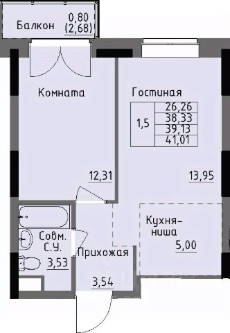 1,5 комнатная квартира / евро двушка площадью 35,6 кв.м. в центральной части города.
