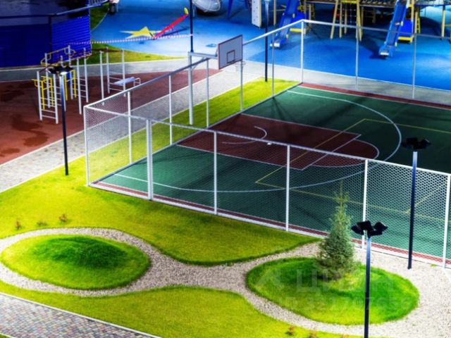 Для детей постарше: велосипедная дорожка, спортивная площадка, зимой хоккейная площадка.