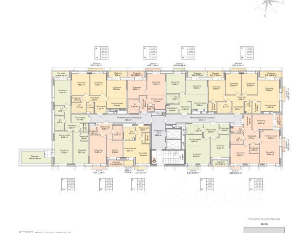Сквозные подъезды для удобства захода в здание и изнутри двора и со стороны улицы.