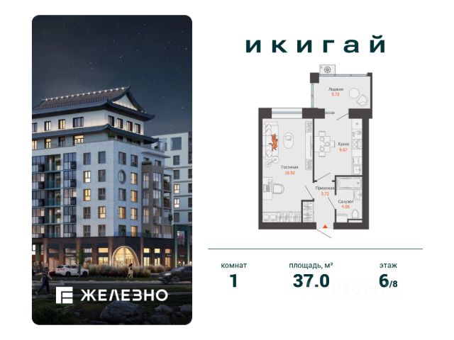 В новом жилом комплексе комфорт-класса "Знак" продается 1-комнатная квартира площадью 36.00 кв. м с отделкой white box. Квартира находится на 6 этаже 7-этажного корпуса 1. Девелопер проекта - федеральный застройщик "Железно".