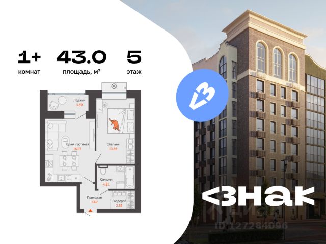 В новом жилом комплексе комфорт-класса "Знак" продается 1-комнатная квартира площадью 37.00 кв. м с отделкой white box. Квартира находится на 2 этаже 8-этажного корпуса 1. Девелопер проекта - федеральный застройщик "Железно".