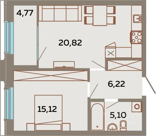 • ✓ В базе Циан 2 1-комнатных квартир (вторичка) в жк Parus Corten в Ижевске