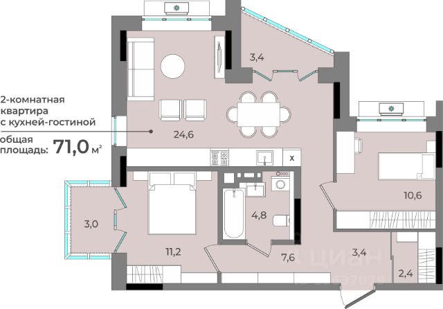 В новом жилом комплексе комфорт-класса "Знак" продается 2-комнатная квартира площадью 68.00 кв. м с отделкой white box. Квартира находится на 5 этаже 7-этажного корпуса 1. Девелопер проекта - федеральный застройщик "Железно". "Знак" - начало добрых перемен. Это жилой комплекс, где всё складывается правильно. Перемены появляются там, где для них создана среда. Когда парк под окнами, а не на другом конце города. Когда коворкинг рядом, и можно сосредоточиться, не уезжая в центр. Когда во дворе - площадки для тренировок, йоги, движения. "Знак" - как символ решений, которые привели к лучшему. Знаковое место Здесь вас ждут оживлённые площади, наполненные событиями и городским ритмом, и уютные бульвары для неспешных прогулок. Для ценителей тишины и созерцания найдутся уединённые уголки, а поклонников активного образа жизни ждут современные и технологичные спортивные площадки. Архитектура как знак качества Жилой комплекс "Знак" состоит из 6 секций высотой 7-8 этажей, лаконичный ансамбль которых окружает внутренний зеленый двор с местами для отдыха жителей. Природные материалы - древесина, камень, - натуральные оттенки земли и травы усиливают гармонию с природой. Комбинированный вентилируемый фасад, прочный кирпичный фундамент, большие окна с 2-камерными стеклопакетами и 5-камерным ПВХ-профилем гарантируют долгий срок эксплуатации, тишину и благоприятный микроклимат в каждой квартире. Лобби: искусство, в котором живут Продуманное пространство с мягкими креслами и камерными зонами отдыха создаёт атмосферу уюта, где искусство становится частью повседневности. Это вдохновляющая среда, которая пробуждает чувства и воображение с первого взгляда. Дизайн лобби воплощает концепцию эмоций в искусстве через пластику и форму. Доминантой становятся выразительные гипсовые барельефы в виде масок, объемность которых подчеркивает многоуровневое освещение. В отделке гармонично сочетаются натуральные материалы: металл контрастирует с тёплым гипсом, а керамогранит - с текстильными панно в зонах отдыха. О застройщике "Железно" - федеральный девелопер со смыслом, создающий умные мини-города с развитой инфраструктурой и высоким уровнем сервиса. За 14 лет беспрерывного развития и стремительного роста компания точно определила своё предназначение: мы с любовью и уважением к человеку создаём города будущего, меняя мир и жизнь людей к лучшему. • 6 городов России: Киров, Ижевск, Ульяновск, Екатеринбург, Пермь, Волгоград. • Строим парки, школы и детские сады. • Земельный банк более 2 000 000 м2. • ТОП-4 застройщиков России по качеству жилья (ЕРЗ.рф от июня 2025). • 28 проектов. • 6-кратные победители и 25-кратные финалисты премии Urban Awards. 2-комнатная квартира, примерная площадь 70 м2 в республике Удмуртская.
