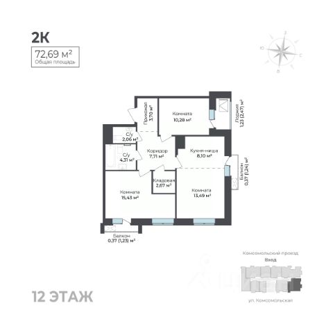• ✓ В базе Циан 14 2-комнатных квартир на 12 этаже в микрорайоне Южный в городе Ижевск