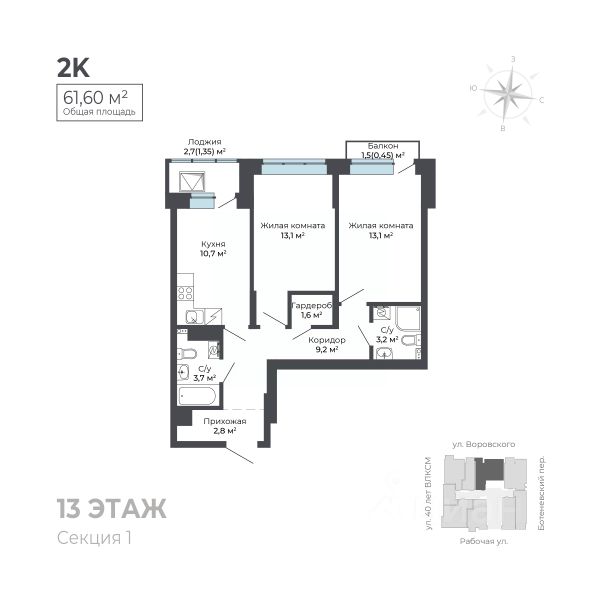 Продаётся 2-комнатная квартира в сданном доме (Союзная, 8Б (Дом 1)), срок сдачи: III-кв. 2025, общей площадью 61.2 кв.м., на 13 этаже. Квартира от застройщика КОМОССТРОЙ. Покупка защищена ФЗ 214 с использованием эскроу счетов. Финский квартал - новый жилой комплекс в Устиновском районе Ижевска. Он расположен в уютном и спокойном месте, вблизи Ярушкинского парка, сразу за торговым центром МЕТРО. Это 9 жилых домов с красивыми и безопасными дворами без машин, продуманными до мелочей семейными планировками, собственной прогулочной аллеей, множеством зелени и просто огромной парковкой! Изюминка жилого комплекса - Зелёная Аллея площадью 4504 кв.м! Это прекрасное место для утренней пробежки, где все негативные мысли отходят на второй план, или для легкой вечерней прогулки в теплом свете фонарей. Для удобства автомобилистов, на территории жилого комплекса мы предусмотрели множество открытых парковочных мест. Помимо них, в границах участка, будет обустроена платная парковка. Квартира: До передачи квартиры собственнику, мы выполняем в ней все капитальные и грязные работы. Стены подготавливаем под оклейку обоями. На полу выполняем полусухую стяжку со звукоизолирующей прослойкой. В квартирах комплекса предусмотрена горизонтальная поквартирная разводка труб отопления, выполненная в конструкции пола. В каждой комнате мы устанавливаем стильные стальные панельные радиаторы с нижней подводкой. Это удобно и эстетично! Громоздкие стояки не будут портить ваш интерьер. В каждой квартире устанавливаем клапаны приточной вентиляции, оснащённые системами шумоизоляции и фильтрации воздуха. Они обеспечивают оптимальный режим притока свежего воздуха в помещение. Устанавливаем надежные металлические входные двери с тепло- и звукоизоляцией. Выполняем прокладку электросетей, устанавливаем электросчетчики, одну розетку и один выключатель в прихожей. По дополнительному соглашению мы можем выполнить в вашей квартире чистовую отделку по нашему типовому проекту. В Финском квартале мы реализуем новый, расширенный пакет системы Умный Дом: - Бесключевой доступ в подъезд - Видеодомофон с функцией Face ID - Видеонаблюдение - Автоматизированный сбор и передача показаний счётчиков Управлять всеми функциями умного дома можно будет с помощью мобильного приложения жильца. Все вопросы можно уточнить в отделе продаж по телефону, указанному в объявлении. Звоните! Продается 2-комнатная квартира на 13 этаже в республике Удмуртская.