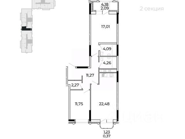 Продаётся 2-комнатная квартира в строящемся доме (Дом 6), срок сдачи: IV-кв. 2025, общей площадью 57.1 кв.м., на 1 этаже. Квартира от застройщика КОМОССТРОЙ. Покупка защищена ФЗ 214 с использованием эскроу счетов.