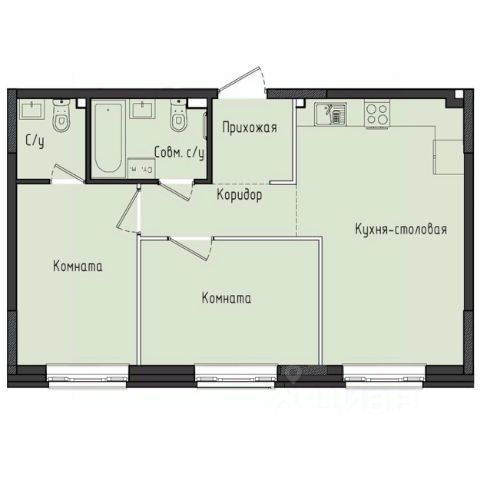 2 спальни (12,8 и 12,5 м2)
