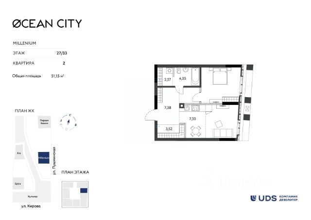 СТАРТ ПРОДАЖ! Продаётся 2-комнатная квартира с кухней-гостиной от девелопера UDS в ЖК "Пять континентов" в финальном доме комплекса 5. Секция 2 на 2 этаже. Общая площадь — 52,5 м². Выбирайте квартиру в топовой локации Ижевска, чтобы всё успевать сегодня и создавать надёжный актив на будущее. — Самый центр города — район, где кипит жизнь. — Пешеходный бульвар вдоль домов — ваша зелёная зона для прогулок, пробежек и встреч в любое время, прямо под окнами. — Все виды общественного транспорта. Остановка — "магазин Океан". — 15 минут до набережной и Центральной площади. Рядом вся необходимая инфраструктура: детские сады, школы, магазины и кафе. — Закрытый двор без машин — спокойно отдыхайте после рабочего дня. — Внутри комплекса — тишина и безопасность, вокруг — динамика центрального района. — Для автомобилистов: подземный паркинг и наземная стоянка. Кафе и магазины — на 1 этаже. Идеальная планировка для начала новой жизни: • Спальня 15,1 м² с просторной лоджией. Окна выходят на новый сквер. • Большая кухня-гостиная 25,9 м² — приглашайте гостей с удовольствием. • Ниша для шкафа в прихожей. • Всего 48 квартир в доме, 9 этажей меньше соседей, больше приватности. Отличный вариант для инвестиций или как первая квартира для ребёнка. Передача ключей — до 30 марта 2029 года. Первые дома уже сданы. Пройдите тест-драйв ЖК — приглашаем на экскурсию. Специальные условия покупки от UDS: • Рассрочка 0% — без переплат. • Трейд-ин — обменяем вашу квартиру на новую. • Банковские программы — рассчитаем на месте. Звоните, пишите — поможем подобрать оптимальные условия. ЖК "Пять континентов" — жильё в центре — ликвид, с которым вы всегда в плюсе.