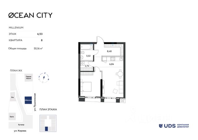 СТАРТ ПРОДАЖ! Продаётся 2-комнатная квартира с кухней-гостиной от девелопера UDS в ЖК "Пять континентов" в финальном доме комплекса 5. Секция 2 на 2 этаже. Общая площадь — 36,9 м². Выбирайте квартиру в топовой локации Ижевска, чтобы всё успевать сегодня и создавать надёжный актив на будущее. — Самый центр города — район, где кипит жизнь. — Пешеходный бульвар вдоль домов — ваша зелёная зона для прогулок, пробежек и встреч в любое время, прямо под окнами. — Все виды общественного транспорта. Остановка — "магазин Океан". — 15 минут до набережной и Центральной площади. Рядом вся необходимая инфраструктура: детские сады, школы, магазины и кафе. — Закрытый двор без машин — спокойно отдыхайте после рабочего дня. — Внутри комплекса — тишина и безопасность, вокруг — динамика центрального района. — Для автомобилистов: подземный паркинг и наземная стоянка. Кафе и магазины — на 1 этаже. Сервисы отеля у вас дома — при покупке недвижимости в домах UDS получаете в подарок 6 месяцев сервиса: масштабная уборка после ремонта, генеральная и регулярная поддерживающая уборка, химчистка мебели, мойка окон. Наслаждайтесь жизнью в новой квартире с первого дня и не думайте о бытовых вопросах. Идеальная планировка для начала новой жизни: • Спальня 12 м² с выходом на лоджию. Окна выходят на новый сквер. • Кухня-гостиная 15,4 м² — oптимaльно для встpеч и отдыха. • Ниша для шкафа в прихожей. • Всего 48 квартир в доме, 9 этажей меньше соседей, больше приватности. Отличный вариант для инвестиций или как первая квартира для ребёнка. Передача ключей — до 30 марта 2029 года. Первые дома уже сданы. Пройдите тест-драйв ЖК — приглашаем на экскурсию. Специальные условия покупки от UDS: • Рассрочка 0% — без переплат. • Трейд-ин — обменяем вашу квартиру на новую. • Банковские программы — рассчитаем на месте. Звоните, пишите — поможем подобрать оптимальные условия. ЖК "Пять континентов" — жильё в центре — ликвид, с которым вы всегда в плюсе.