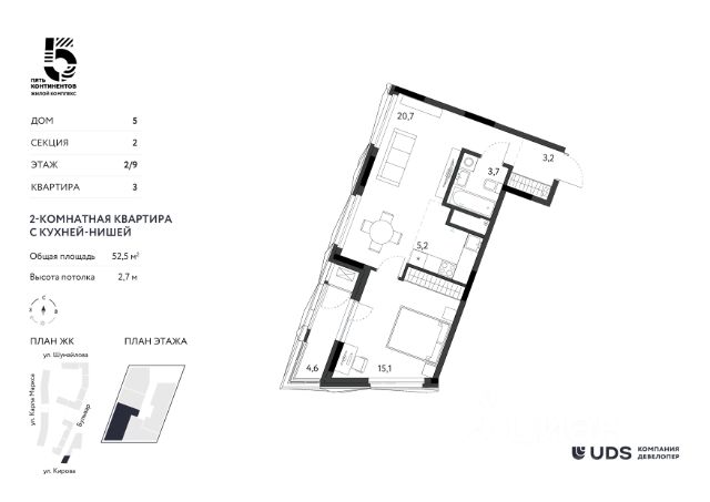 СТАРТ ПРОДАЖ! Успейте забронировать квартиру по ценам 2025 года в финальном доме ЖК "Пять континентов". Живите в центре! Квартиры в топовой локации Ижевска, где всё действительно рядом. • 15 минут пешком до набережной и Центральной площади • Новый пешеходный бульвар вдоль домов — комфортное пространство для прогулок и встреч • Школы, детские сады и работа — в шаговой доступности • Все виды общественного транспорта рядом Финальный дом жилого комплекса Состоит из двух секций переменной этажности — от 9 до 23 этажей. • Просторные кухни-гостиные • Мастер-спальни с собственной душевой • Закрытая территория и видеонаблюдение 24/7 • Двухуровневый подземный паркинг • Индивидуальные кладовые • Тихий и безопасный внутренний двор Внутри комплекса — спокойствие и безопасность, за его пределами — динамика центрального района. Новый район CITY: престижные дома и культурное окружение вокруг. Жильё в центре — надёжный ликвид и уверенность в будущем. Выбирайте ЖК "Пять континентов" для жизни и инвестиций. Продается 2-комнатная квартира в районе Октябрьский в городе Ижевск.