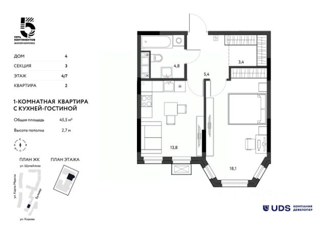 Продаётся 2-комнатная квартира квартира в 10 минутах от центра Ижевска, ул Холмогорова, площадью 56.00 кв. м. Квартира находится в жилом комплексе бизнес-класса "МИРЫ" от федерального застройщика "Железно". Флагманский проект "МИРЫ" - место, где абсолютная безопасность, гармония тишины и привилегия жизни в шаге от делового центра объединяются в единый ансамбль. Здесь соединяются эстетика природы и энергия городской жизни - вы сами выбираете свой ритм каждый день. Каждая из трех башен обладает собственным характером, выраженным через благородную палитру металлов - золото, серебро, бронзу. Динамичный переменный силуэт - от 13 до 16 этажей - особенно красиво выделяется с наступлением темноты: архитектурная подсветка превращает дома в настоящие арт-объекты. На территории жилого комплекса будет 3 двора, каждый из которых воплощает уникальную природную стихию. Элементы из бронзы символизируют устойчивость Земли, серебряные детали - легкость Воды, а яркое золото - энергичный Огонь. Каждое из этих уникальных пространств станет приватным уголком для активного и тихого отдыха резидентов, семейных прогулок и игр детей. Преимущества: - Закрытая территория - Умный дом - Wi-Fi на всей территории, Face ID, умные лифты - Повышенная шумоизоляция квартир; - Индивидуальные гаражные боксы; - Собственные котельные - гарантия комфортного микроклимата; - Вся необходимая инфраструктура в ближайшей доступности: школы, детские сады, магазины, торговые центры и многое другое. Успейте приобрести квартиру на выгодных условиях! Чтобы узнать подробности, обращайтесь за консультацией по телефону. Продам 2-комнатную квартиру в микрорайоне Север в городе Ижевск.