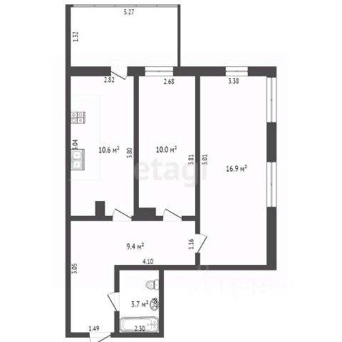 Квартира площадью 49,3 кв. Отдельная большая спальня и кухня-гостиная. Также имеется гардеробная комната, которую можно использовать как рабочее место или школьный уголок. Балкон обшит, дополнительно установлен ограничитель, так как окна высокие (дополнительная защита для детей).