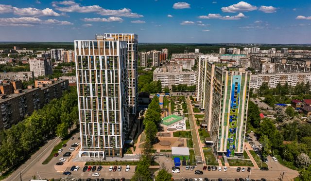 Жилой комплекс ECO Life (ЖК Эколайф) воплощает атмосферу комфорта и уюта загородной жизни в центре Ижевске. Скрытый внутри микрорайона, вдали от шумных дорог, он находится в самой престижной части города, рядом с городской Администрацией. Четыре дома комплекса уже сданы, и в них счастливо живут семьи. Возводится последний дом комплекса. Архитектура домов, обустройство двора, общественных пространств и холлов выполнены с применением природных мотивов и материалов. Огороженный двор без машин площадью почти 1 гектар. Комплекс стал финалистом всероссийской премии URBAN AWARD 2019 в номинации "Лучшая региональная концепция благоустройства и инфраструктуры". С помощью ландшафтного дизайна двор поделен на тематические зоны для активных игр, тихого отдыха и занятия спортом. В проекте дома представлены только семейные планировки и отсутствуют малогабаритные квартиры, популярные для сдачи в аренду. Виды планировок начинаются с двухкомнатных квартир с кухней-гостиной. Подземный паркинг и индивидуальные кладовые на этаже позволят организовать семейный быт еще комфортнее. Продам 2-комнатную квартиру в ЖК ECO life Весна в Ижевске.
