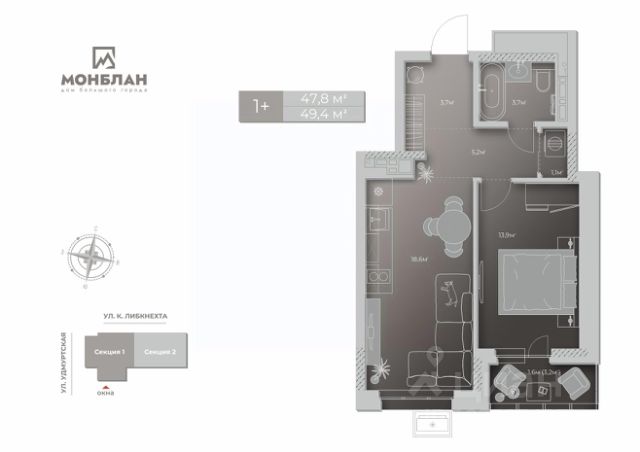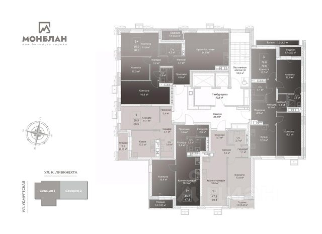 Дом большого города Монблан- это сданный дом бизнес-класса, расположенный в сердце Ижевска на кольце улиц Удмуртской и К.Либкнехта. Вся городская инфраструктура в шаговой доступности. Дом сдан! Условия приобретения: 1. Скидка при 100% оплате ( СИ, IT- без субсидирования) 2. Субсидированная ипотека от 3,5% 3.Ипотека с ПВ от 10% , Циан, Ян.Недвижимость УКАЗАНА БЕЗ СКИДКИ. Преимущества дома: -Просторный функциональный холл и бесшумные лифты; -наземный и подземный паркинг с автоматизированной системой доступа; -приватная благоустроенная придомовая зеленая территория с зонами для отдыха и детской площадкой. Технологические решения: 1.Витражное остекление 2.Ниши для кондиционеров 3.Наружные и межквартирные стены из красного керамического кирпича и окна с шестикамерным профилем - для повышенной звукоизоляции 4.Усиленная звукоизоляции пола 5. Приточная вентиляция с фильтрами предварительной очистк Безопасность: 1.Огороженная территория с системой видеонаблюдения по периметру дома и во дворе и зоной консьержа внутри дома 2. Автоматическая передача показаний счетчиков. 3. Подводка интернет кабеля и ТВ-кабеля в квартиру.
