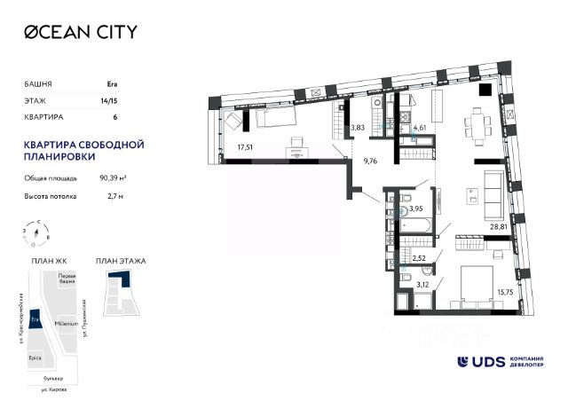 В новом жилом комплексе комфорт-класса "Знак" продается 3-комнатная квартира площадью 88.00 кв. м с отделкой white box. Квартира находится на 2 этаже 7-этажного корпуса 1. Девелопер проекта - федеральный застройщик "Железно". "Знак" - начало добрых перемен. Это жилой комплекс, где всё складывается правильно. Перемены появляются там, где для них создана среда. Когда парк под окнами, а не на другом конце города. Когда коворкинг рядом, и можно сосредоточиться, не уезжая в центр. Когда во дворе - площадки для тренировок, йоги, движения. "Знак" - как символ решений, которые привели к лучшему. Знаковое место Здесь вас ждут оживлённые площади, наполненные событиями и городским ритмом, и уютные бульвары для неспешных прогулок. Для ценителей тишины и созерцания найдутся уединённые уголки, а поклонников активного образа жизни ждут современные и технологичные спортивные площадки. Архитектура как знак качества Жилой комплекс "Знак" состоит из 6 секций высотой 7-8 этажей, лаконичный ансамбль которых окружает внутренний зеленый двор с местами для отдыха жителей. Природные материалы - древесина, камень, - натуральные оттенки земли и травы усиливают гармонию с природой. Комбинированный вентилируемый фасад, прочный кирпичный фундамент, большие окна с 2-камерными стеклопакетами и 5-камерным ПВХ-профилем гарантируют долгий срок эксплуатации, тишину и благоприятный микроклимат в каждой квартире. Лобби: искусство, в котором живут Продуманное пространство с мягкими креслами и камерными зонами отдыха создаёт атмосферу уюта, где искусство становится частью повседневности. Это вдохновляющая среда, которая пробуждает чувства и воображение с первого взгляда. Дизайн лобби воплощает концепцию эмоций в искусстве через пластику и форму. Доминантой становятся выразительные гипсовые барельефы в виде масок, объемность которых подчеркивает многоуровневое освещение. В отделке гармонично сочетаются натуральные материалы: металл контрастирует с тёплым гипсом, а керамогранит - с текстильными панно в зонах отдыха. О застройщике "Железно" - федеральный девелопер со смыслом, создающий умные мини-города с развитой инфраструктурой и высоким уровнем сервиса. За 14 лет беспрерывного развития и стремительного роста компания точно определила своё предназначение: мы с любовью и уважением к человеку создаём города будущего, меняя мир и жизнь людей к лучшему. • 6 городов России: Киров, Ижевск, Ульяновск, Екатеринбург, Пермь, Волгоград. • Строим парки, школы и детские сады. • Земельный банк более 2 000 000 м2. • ТОП-4 застройщиков России по качеству жилья (ЕРЗ.рф от июня 2025). • 28 проектов. • 6-кратные победители и 25-кратные финалисты премии Urban Awards. 3-комнатная квартира, примерная площадь 90 м2 в республике Удмуртская.