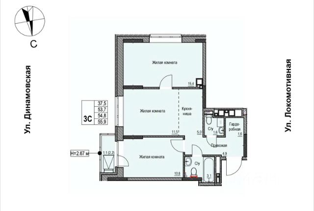 В новом жилом комплексе комфорт-класса "Знак" продается 3-комнатная квартира площадью 91.00 кв. м с отделкой white box. Квартира находится на 7 этаже 7-этажного корпуса 1. Девелопер проекта - федеральный застройщик "Железно".