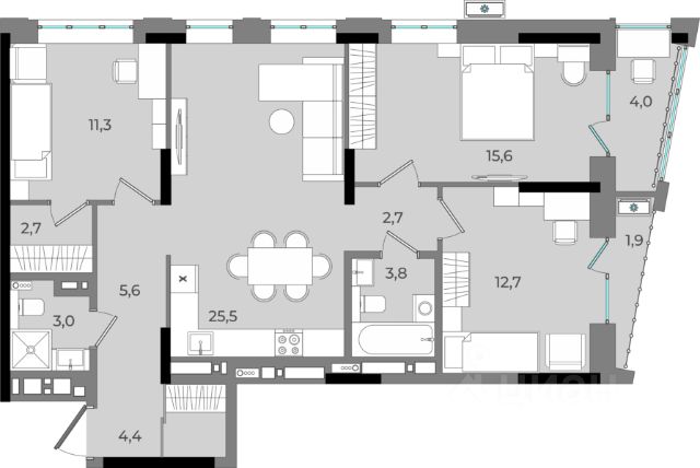 Предусмотрена предчистовая или чистовая отделка квартиры современными материалами в светлых тонах.