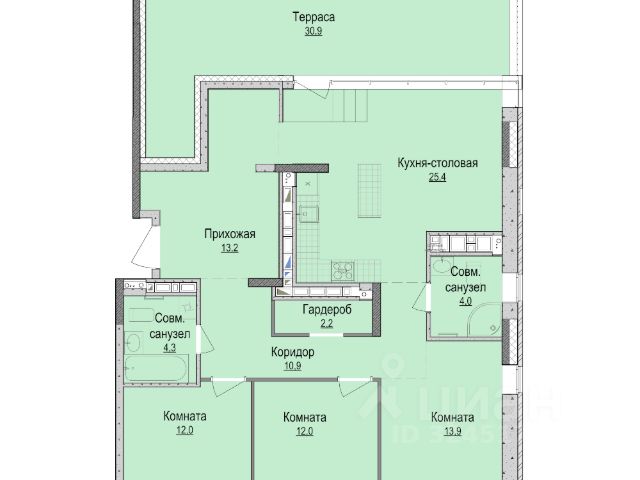 • ✓ В базе Циан 1 3-комнатных квартир на 15 этаже в микрорайоне Центральный в городе Ижевск