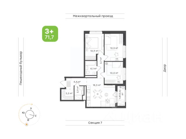 Продаётся 3-комнатная квартира в строящемся доме (Дом 25), срок сдачи: II-кв. 2027, общей площадью 70.7 кв.м., на 4 этаже. Объявление от застройщика КОМОССТРОЙ. Покупка защищена ФЗ 214 с использованием эскроу счетов. Город Оружейников расположен вдоль улицы Берша, на границе Завьяловского района и города Ижевска. Центральный бульвар - изюминка жилого комплекса Город Оружейников. Это огромное пространство - целых 2,37 Га жилой среды, внутри которой мы разрабатываем множество сценариев досуга и отдыха будущих жителей! Пешеходная зона протяженностью свыше 1000 метров! Для создания комфортной атмосферы, вдоль всего пешеходного маршрута мы высаживаем настоящие сады с молодыми деревьями, декоративными кустарниками и многолетними цветами. А ещё, устанавливаем удобные деревянные скамейки и перголы, на которых можно будет с комфортом передохнуть во время долгой прогулки. На территории бульвара предусмотрено наличие множества коммерческих помещений. В них могут быть организованы уютные кафе с летними верандами, небольшие магазинчики, пункты проката велосипедов и электросамокатов. Целых 3569 метров беговых и велодорожек! Здесь можно гулять и заниматься спортом. И не нужно никуда ехать! Выйти на утреннюю пробежку или покататься на велосипеде после работы вы сможете прямо внутри своего жилого комплекса. Нужно только выйти из дома! Для любителей экстрима, прямо на территории бульвара мы установим рампу и памп-трек. Квартира: Высота потолков в квартире - 2,6 метра и увеличенными оконными проемами. Высота подоконника составит - всего 70 см от пола, благодаря чему в квартире всегда будет много света, тепла и уюта. Окна, выходящие на балконы, предусмотрены панорамными, практически от уровня пола. До передачи собственнику, в квартире мы выполняем все капитальные и грязные работы. Поверхности стен из керамзитобетонного блока и бетона штукатурим сухими смесями. На гипсокартонных стенах шпаклюем стыки. Вам остается только поклеить обои по вашему вкусу. На полу выполняем полусухую стяжку из цементно-песчаного раствора с фиброармированием для обеспечения вертикальной звукоизоляции. Устанавливаем надежные металлические входные двери. Для обеспечения тепло и звукоизоляции полости двери и дверной коробки заполняются негорючим минеральным утеплителем. Выполняем прокладку электросетей, устанавливаем электросчетчики. Устанавливаем счетчики воды с импульсным выводом. Окна выполняем из ПВХ-профиля с энергосберегающей оконной конструкцией. Для создания комфортной атмосферы, в квартирах мы устанавливаем клапаны приточной вентиляции с системой фильтрации воздуха. По дополнительному соглашению мы можем выполнить в вашей квартире чистовую отделку по нашему типовому проекту. Специально для удобства наших клиентов мы подготовили к показу демонстрационный этаж. Прогуляться по квартирам на демо-этаже, оценить качество строительных материалов и выбрать понравившуюся планировку вы можете записавшись на посещение, нажав на кнопку "Записаться на просмотр" в объявлении.