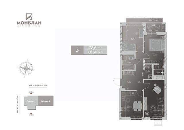 Дом большого города Монблан- это сданный дом бизнес-класса, расположенный в сердце Ижевска на кольце улиц Удмуртской и К.Либкнехта. Вся городская инфраструктура в шаговой доступности. Дом сдан! Условия приобретения: 1. Скидка при 100% оплате ( СИ, IT- без субсидирования) 2. Субсидированная ипотека от 3,5% 3.Ипотека с ПВ от 10% Стоимость УКАЗАНА БЕЗ СКИДКИ. Преимущества дома: -Просторный функциональный холл и бесшумные лифты; -наземный и подземный паркинг с автоматизированной системой доступа; -приватная благоустроенная придомовая зеленая территория с зонами для отдыха и детской площадкой. Технологические решения: 1.Витражное остекление 2.Ниши для кондиционеров 3.Наружные и межквартирные стены из красного керамического кирпича и окна с шестикамерным профилем - для повышенной звукоизоляции 4.Усиленная звукоизоляции пола 5. Приточная вентиляция с фильтрами предварительной очистк Безопасность: 1.Огороженная территория с системой видеонаблюдения по периметру дома и во дворе и зоной консьержа внутри дома 2. Автоматическая передача показаний счетчиков. 3. Подводка интернет кабеля и ТВ-кабеля в квартиру.