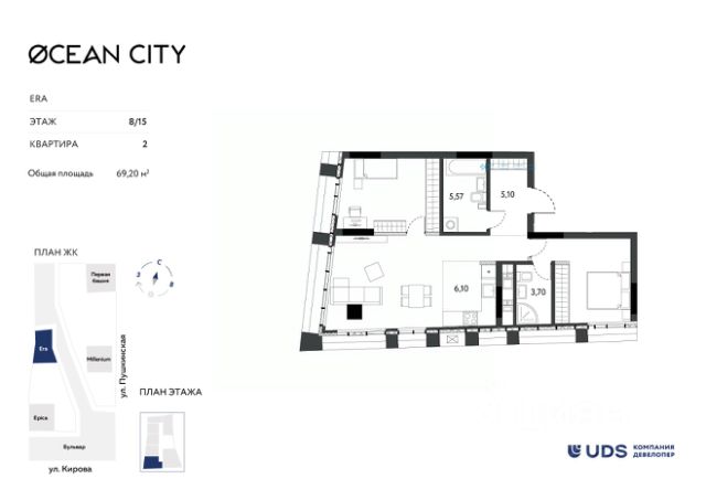 Лучший жилой небоскреб. Самый высокий дом в Ижевске, который видно даже с самолета. OCEAN CITY (ЖК Оушен сити) - для тех, кто хочет жить на высоте и ценит статус. Панорамные виды из окон, которые будут всегда с вами. Неземной двор на высоте 8 метров - эксклюзивная приватная территория только для резидентов OCEAN CITY (ЖК Оушен сити). Зоны отдыха, дизайнерские детские площадки, open-air тренажеры. 10 000 м² пешеходного бульвара "ОКЕАН" — стильное продолжение вашего пространства. Вечерние променады, уютные кафе, живая атмосфера — дорога домой превратиться в удовольствие. Бутиковый ритейл у вас под ногами — кофейни, рестораны, spa-салоны, премиальные магазины. На массаж и за кофе в тапочках, не выходя на улицу. Технологии комфорта нового поколения: Бесключевой доступ — дом распознаёт вас автоматически. Премиальные высокоскоростные лифты с увеличенными потолками — перемещения в стиле CITY. Свободные планировки — воплотите любую дизайн концепцию без границ. Панорамное остекление с интегрированным климат-контролем — идеальный микроклимат без компромиссов. Тёплый подземный паркинг 24/7 — ваш автомобиль в безопасности в любое время года. Инвестиция в престижную недвижимость — OCEAN CITY (ЖК ОКЕАН сити) не просто жильё, а актив, который будет расти в цене. При покупке недвижимости в домах UDS вы получаете в подарок 6 или 12 месяцев дополнительного сервиса отельного уровня. В зависимости от пакета в программу входит: масштабная уборка после ремонта, генеральная и регулярная поддерживающая уборка, химчистка мебели, мойка окон, глажка вещей, личный шеф-повар на праздник. Наслаждайтесь жизнью в новой квартире с первого дня и не думайте о бытовых вопросах. Купить 3-комнатную квартиру в новостройке без отделки в республике Удмуртская.