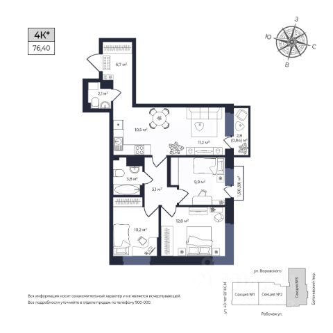 Трехкомнатная квартира евро-планировки в 25-этажной секции ЖК "Речной парк", дом 2. Кухня-гостиная 20 м2 правильной прямоугольной формы с выходом на остекленную теплую лоджию. 2 отдельные спальни, в которых можно разместить всю необходимую мебель и эргономично распланировать пространство. В квартире 2 санузла, в одном из них можно поставить стиральную машину. Грязная зона прихожей отделена от жилой части, для уличной одежды и обуви предусмотрена отдельная небольшая гардеробная комната. Окна выходят на восток, комнаты светлые - уровень подоконника 60 см от пола, высота окна 1,7 м. 3-комнатная квартира в новостройке без отделки в Ижевске.