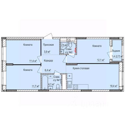 116 684 ₽/м²