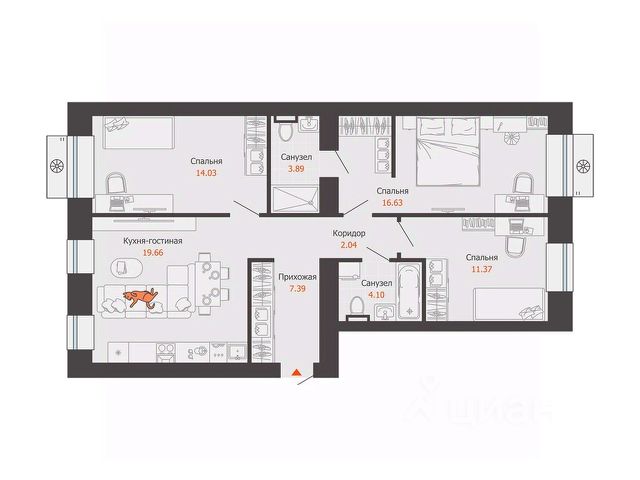 В новом жилом комплексе комфорт-класса "Знак" продается 3-комнатная квартира площадью 82.00 кв. м с отделкой white box. Квартира находится на 4 этаже 8-этажного корпуса 1. Девелопер проекта - федеральный застройщик "Железно". "Знак" - начало добрых перемен. Это жилой комплекс, где всё складывается правильно. Перемены появляются там, где для них создана среда. Когда парк под окнами, а не на другом конце города. Когда коворкинг рядом, и можно сосредоточиться, не уезжая в центр. Когда во дворе - площадки для тренировок, йоги, движения. "Знак" - как символ решений, которые привели к лучшему. Знаковое место Здесь вас ждут оживлённые площади, наполненные событиями и городским ритмом, и уютные бульвары для неспешных прогулок. Для ценителей тишины и созерцания найдутся уединённые уголки, а поклонников активного образа жизни ждут современные и технологичные спортивные площадки. Архитектура как знак качества Жилой комплекс "Знак" состоит из 6 секций высотой 7-8 этажей, лаконичный ансамбль которых окружает внутренний зеленый двор с местами для отдыха жителей. Природные материалы - древесина, камень, - натуральные оттенки земли и травы усиливают гармонию с природой. Комбинированный вентилируемый фасад, прочный кирпичный фундамент, большие окна с 2-камерными стеклопакетами и 5-камерным ПВХ-профилем гарантируют долгий срок эксплуатации, тишину и благоприятный микроклимат в каждой квартире. Лобби: искусство, в котором живут Продуманное пространство с мягкими креслами и камерными зонами отдыха создаёт атмосферу уюта, где искусство становится частью повседневности. Это вдохновляющая среда, которая пробуждает чувства и воображение с первого взгляда. Дизайн лобби воплощает концепцию эмоций в искусстве через пластику и форму. Доминантой становятся выразительные гипсовые барельефы в виде масок, объемность которых подчеркивает многоуровневое освещение. В отделке гармонично сочетаются натуральные материалы: металл контрастирует с тёплым гипсом, а керамогранит - с текстильными панно в зонах отдыха. О застройщике "Железно" - федеральный девелопер со смыслом, создающий умные мини-города с развитой инфраструктурой и высоким уровнем сервиса. За 14 лет беспрерывного развития и стремительного роста компания точно определила своё предназначение: мы с любовью и уважением к человеку создаём города будущего, меняя мир и жизнь людей к лучшему. • 6 городов России: Киров, Ижевск, Ульяновск, Екатеринбург, Пермь, Волгоград. • Строим парки, школы и детские сады. • Земельный банк более 2 000 000 м2. • ТОП-4 застройщиков России по качеству жилья (ЕРЗ.рф от июня 2025). • 28 проектов. • 6-кратные победители и 25-кратные финалисты премии Urban Awards.