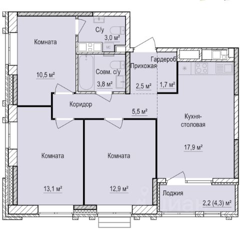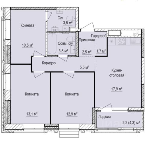 Предусмотрена предчистовая или чистовая отделка квартиры современными материалами в светлых тонах.