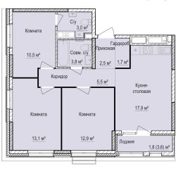 • ✅ Минимальная площадь: 57,6 м²