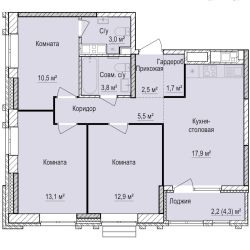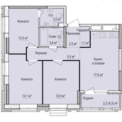 • Кухня-гостиная 13,78 м² с лоджией - оптимально для повседневной жизни