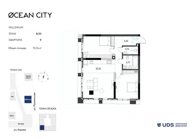 Лучший жилой небоскреб. Самый высокий дом в Ижевске, который видно даже с самолета. OCEAN CITY (ЖК Оушен сити) - для тех, кто хочет жить на высоте и ценит статус. Панорамные виды из окон, которые будут всегда с вами. Неземной двор на высоте 8 метров - эксклюзивная приватная территория только для резидентов OCEAN CITY (ЖК Оушен сити). Зоны отдыха, дизайнерские детские площадки, open-air тренажеры. 10 000 м² пешеходного бульвара "ОКЕАН" — стильное продолжение вашего пространства. Вечерние променады, уютные кафе, живая атмосфера — дорога домой превратиться в удовольствие. Бутиковый ритейл у вас под ногами — кофейни, рестораны, spa-салоны, премиальные магазины. На массаж и за кофе в тапочках, не выходя на улицу. Технологии комфорта нового поколения: Бесключевой доступ — дом распознаёт вас автоматически. Премиальные высокоскоростные лифты с увеличенными потолками — перемещения в стиле CITY. Свободные планировки — воплотите любую дизайн концепцию без границ. Панорамное остекление с интегрированным климат-контролем — идеальный микроклимат без компромиссов. Тёплый подземный паркинг 24/7 — ваш автомобиль в безопасности в любое время года. Инвестиция в престижную недвижимость — OCEAN CITY (ЖК ОКЕАН сити) не просто жильё, а актив, который будет расти в цене.