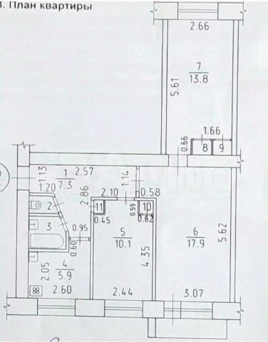 + площадь общая 62,5 м2 без учета балкона