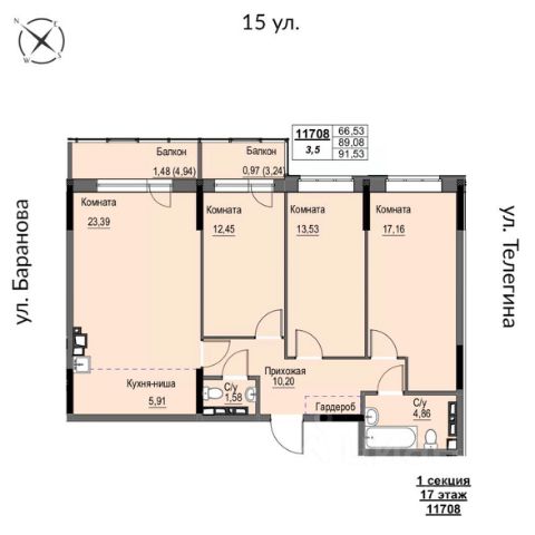 Четырехкомнатная квартира евро-планировки в 25-этажной секции ЖК ""Речной парк" дом 2. Выходит на 2 стороны света, окна на север и восток, вид на ул. Клубная и город, а с верхних этажей на теплой лоджии открывается красивый вид на закат и панорама Ижевского пруда. Кухня-гостиная почти 20 м2, правильной формы - здесь удобно расположить и кухонный гарнитур, и зону гостиной с диваном и обеденным столом. 3 отдельные спальни, в каждой запланировано место для вместительного шкафа. 2 санузла, в одном из них можно установить стиральную машину. Прихожая просторная, грязная зона отделена от жилой части квартиры, достаточно места для шкафа под уличную одежду и обувь. Квартира светлая - увеличенные оконные проемы, уровень подоконника 60 см от пола, высота окна 1,7 м.