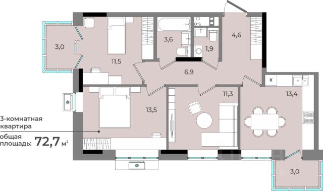 • ✅ Минимальная площадь: 70,9 м²