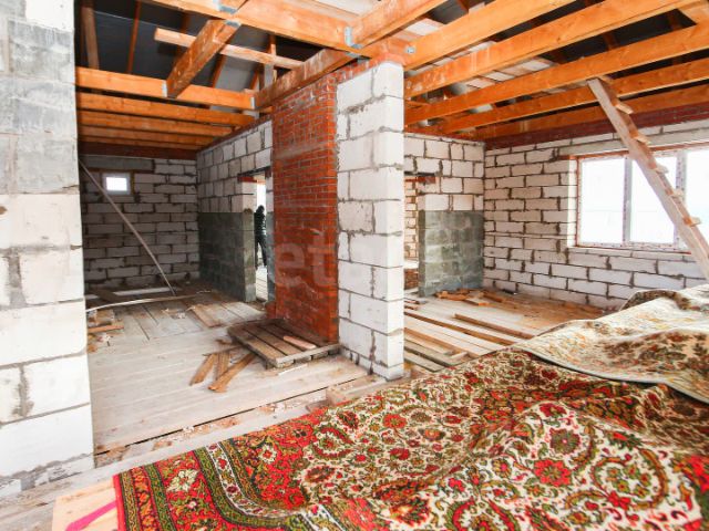 Второй этаж разделе на кухню-столовую и большую гостевую комнату. В настоящий момент этаж утеплен, подведены трубы для всех коммуникаций.