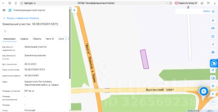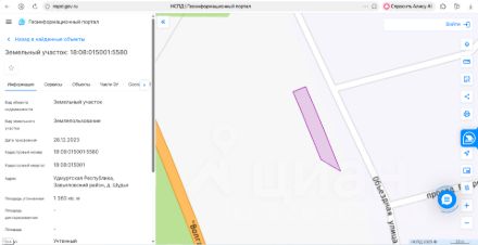 Земельный участок площадью 1 500 кв. м, категория земель земли населенных пунктов, виды разрешенного использования индивидуальное жилищное строительство, кадастровый номер 18:08:019003:2852, местонахождение: Удмуртская Республ...