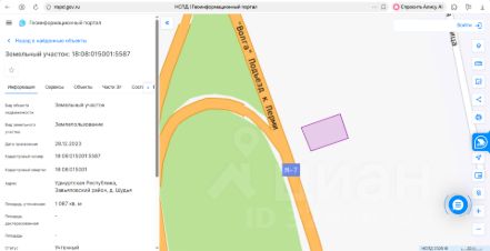 Земельный участок площадью 1087 кв. м, категория земель земли населенных пунктов, виды разрешенного использования индивидуальное жилищное строительство, кадастровый номер 18:08:015001:5587, местонахождение: Удмуртская Республи...