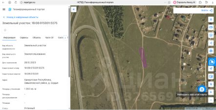 Земельный участок площадью 1 350 кв. м, категория земель земли населенных пунктов, виды разрешенного использования индивидуальное жилищное строительство, кадастровый номер 18:08:015001:5575, местонахождение: Удмуртская Республ...
