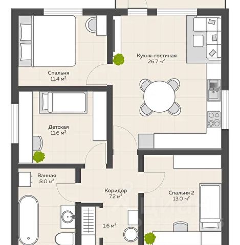 Есть своя скважина на 60 метров, канализация - септик. Газ проходит рядом с участком.