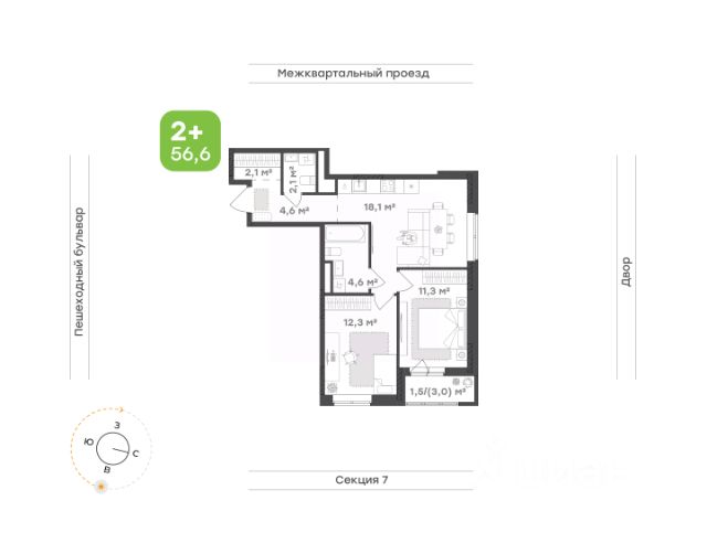 В новом жилом комплексе комфорт-класса "Знак" продается 2-комнатная квартира площадью 65.00 кв. м с отделкой white box. Квартира находится на 2 этаже 7-этажного корпуса 1. Девелопер проекта - федеральный застройщик "Железно".