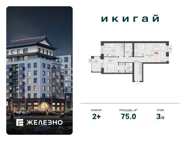 В новом жилом комплексе комфорт-класса "Знак" продается 2-комнатная квартира площадью 73.00 кв. м с отделкой white box. Квартира находится на 2 этаже 7-этажного корпуса 1. Девелопер проекта - федеральный застройщик "Железно". "Знак" - начало добрых перемен. Это жилой комплекс, где всё складывается правильно. Перемены появляются там, где для них создана среда. Когда парк под окнами, а не на другом конце города. Когда коворкинг рядом, и можно сосредоточиться, не уезжая в центр. Когда во дворе - площадки для тренировок, йоги, движения. "Знак" - как символ решений, которые привели к лучшему. Знаковое место Здесь вас ждут оживлённые площади, наполненные событиями и городским ритмом, и уютные бульвары для неспешных прогулок. Для ценителей тишины и созерцания найдутся уединённые уголки, а поклонников активного образа жизни ждут современные и технологичные спортивные площадки. Архитектура как знак качества Жилой комплекс "Знак" состоит из 6 секций высотой 7-8 этажей, лаконичный ансамбль которых окружает внутренний зеленый двор с местами для отдыха жителей. Природные материалы - древесина, камень, - натуральные оттенки земли и травы усиливают гармонию с природой. Комбинированный вентилируемый фасад, прочный кирпичный фундамент, большие окна с 2-камерными стеклопакетами и 5-камерным ПВХ-профилем гарантируют долгий срок эксплуатации, тишину и благоприятный микроклимат в каждой квартире. Лобби: искусство, в котором живут Продуманное пространство с мягкими креслами и камерными зонами отдыха создаёт атмосферу уюта, где искусство становится частью повседневности. Это вдохновляющая среда, которая пробуждает чувства и воображение с первого взгляда. Дизайн лобби воплощает концепцию эмоций в искусстве через пластику и форму. Доминантой становятся выразительные гипсовые барельефы в виде масок, объемность которых подчеркивает многоуровневое освещение. В отделке гармонично сочетаются натуральные материалы: металл контрастирует с тёплым гипсом, а керамогранит - с текстильными панно в зонах отдыха. О застройщике "Железно" - федеральный девелопер со смыслом, создающий умные мини-города с развитой инфраструктурой и высоким уровнем сервиса. За 14 лет беспрерывного развития и стремительного роста компания точно определила своё предназначение: мы с любовью и уважением к человеку создаём города будущего, меняя мир и жизнь людей к лучшему. • 6 городов России: Киров, Ижевск, Ульяновск, Екатеринбург, Пермь, Волгоград. • Строим парки, школы и детские сады. • Земельный банк более 2 000 000 м2. • ТОП-4 застройщиков России по качеству жилья (ЕРЗ.рф от июня 2025). • 28 проектов. • 6-кратные победители и 25-кратные финалисты премии Urban Awards.