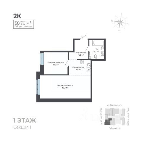 5 минут до центра — вся городская инфраструктура под рукой: ТЦ, кафе, клиники, школы.