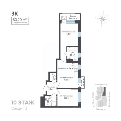 17-этажное трехсекционное здание дома позволяет своим жителям уже со средних этажей любоваться панорамными видами из своих окон.