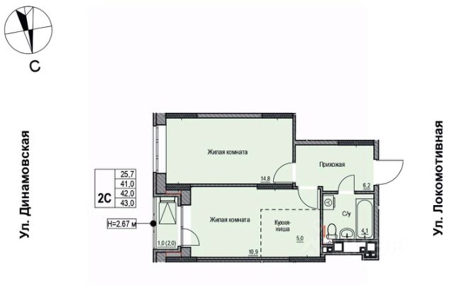Продаётся 2-комнатная квартира в строящемся доме (Дом 1), срок сдачи: II-кв. 2027, общей площадью 42 кв.м., на 4 этаже. ЖК "Локомотив" - это жилой комплекс, состоящий из трех домов, объединенных стилобатом. Удобное расположение, 15 минут до центра.