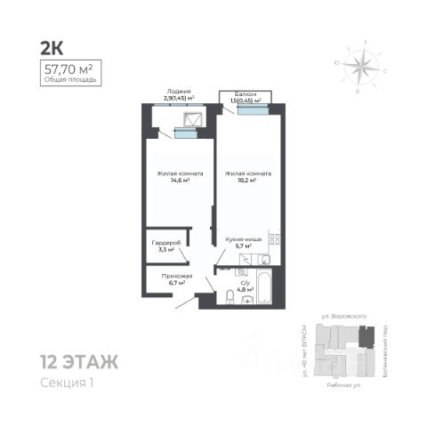 Планировка квартиры современная и удобная (формат евро 3,5). Окна выходят на две стороны, в квартире всегда светло и уютно.