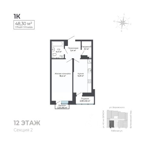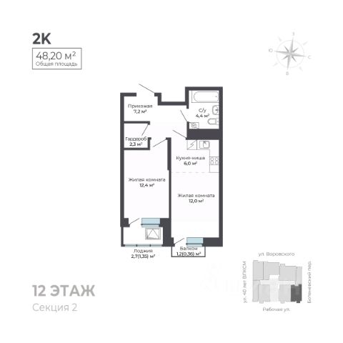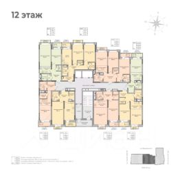 Квартира расположена в 14-ти этажном одноподъездном доме на 12 этаже. Квартиры верхних видовых (с 12-го по 14-й) этажей оборудованы витражным остеклением лоджий в пол. Подъезд имеет дизайнерский холл с двумя лифтами КОNЕ.