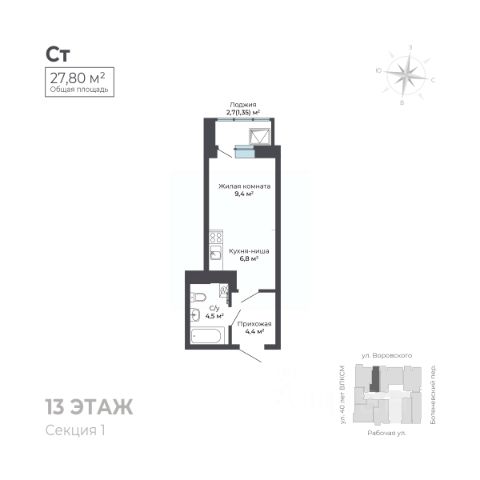 Удобная транспортная развязка позволит за 7 минут добраться до Центральной площади, сходить в Цирк или прогуляться в "Летнем саду".