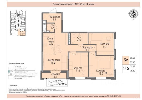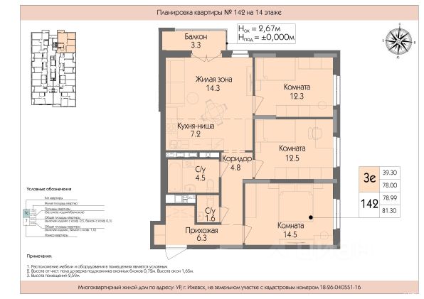 СКОРО КЛЮЧИ! Продаётся 3-комнатная квартира с кухней-гостиной от девелопера UDS в ЖК "Пять континентов" в 3 доме комплекса. Секция 5 на 12 этаже. Общая площадь — 68,78 м². Выбирайте квартиру в топовой локации Ижевска, чтобы всё успевать сегодня и создавать надёжный актив на будущее. — Самый центр города — район, где кипит жизнь. — Пешеходный бульвар вдоль домов — ваша зелёная зона для прогулок и встреч в любое время, прямо под окнами. — Все виды общественного транспорта. Остановка — "магазин Океан". — 15 минут до набережной и Центральной площади. Рядом детские сады 235, 189, 287, 241, 73; школы 5, 88, 11, 22, 27; частные школы SOK, NOVA; развивающие центры: Маленький гений, Сова, Знайка, АБВГД+, Tosky Talky, Cherry-Pick, Оранжевый лев, Монтессори-дворик, Слушарики. Лицей 29 — две остановки на трамвае. — Внутри комплекса — тишина и безопасность, вокруг — динамика центрального района. — Закрытый двор без машин — спокойно отпускайте ребёнка играть с друзьями. — Подземный паркинг и наземная стоянка. Кафе и магазины — на 1 этаже. Сервисы отеля у вас дома — при покупке недвижимости в домах UDS получаете в подарок 6 месяцев сервиса: масштабная уборка после ремонта, генеральная и регулярная поддерживающая уборка, химчистка мебели, мойка окон. Наслаждайтесь жизнью в новой квартире с первого дня и не думайте о бытовых вопросах. Удобная планировка для семьи: • Кухня-гостиная 13,54 м² с лоджией - оптимально для повседневной жизни • Родительская мастер-спальня 19,39 м² с санузлом 3,93 м². • Детская комната 14,45 м² в другой части квартиры. • Ниша для шкафа в прихожей. Передача ключей — до 30 июня 2026 года. Первые дома уже сданы. Пройдите тест-драйв ЖК — приглашаем на экскурсию. Специальные условия покупки от UDS: • Трейд-ин — обменяем вашу квартиру на новую. • Банковские программы — рассчитаем на месте. Звоните, пишите — поможем подобрать оптимальные условия. ЖК "Пять континентов" — ликвидное жильё в центре, с которым вы всегда в плюсе.